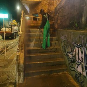 Es la limpieza realizada mediante el uso de equipos mecánicos de agua a alta presión. Dentro de estas actividades se encuentran el lavado de puentes peatonales y puntos críticos sanitarios.